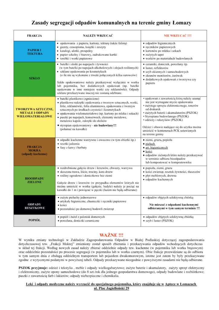 Zasady segregacji odpadów komunalnych na 2026 r. - gmina Łomazy